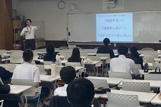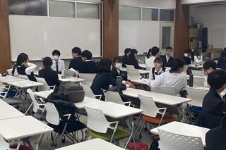 その後、担当の方から全員に対して、これから行うすべての研修でのお願いとして、「反応する!」、「遠慮をしない!」、「わかったフリをしない」。また、「自らの将来の可能性へ繋げる想いで、日々、過ごしてほしい。時間は有限であり、どのように過ごすかは自分次第である。」という話しがありました。全体への話しを終えた後、グループに分かれ、自己紹介を行い、学習面・生活面でやるべきことや、研修へ参加しようと思った理由と研修への個人目標などについて共有していました。