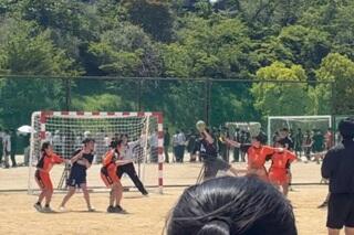 本日5月4日(日)、女子ハンドボール部が「第79回春季総合体育大会 兼 第76回インターハイ予選」ブロック大会(南地区)のトーナメント1回戦に出場しました。本校は南ブロックの予選E(三国丘、岸和田、佐野・東大谷)のリーグ戦を1勝1敗とし、本日のトーナメントにすすみました。1回戦は府立鳳高等学校との対戦で、府立泉北高等学校グラウンドにおいて午前10時から行われました。私は今回初めて、ハンドボール部の試合の観戦に行ってきました。今年度はできる限り、これまで行ったことのない部活動にも訪れ、生徒たちの頑張る姿を見たいと考えています。