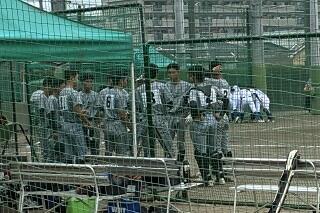 9回表の攻撃から左投手に交代しました。先頭打者をフォアボールで出し、バントヒット、送りバントで1アウト2,3塁のチャンスをつくりましたが、次打者はセカンドフライに終わりました。次打者はフォアボールで満塁としましたが、ショートゴロで得点することができませんでした。チャンスをつくりながら得点できなかったこともあり、生徒たちにいやな雰囲気がなければよいがと思っていました。