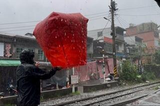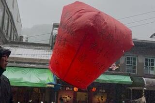 「天燈上げ」は台湾の伝統文化であり、直径1mほどの油紙と竹で作られたランタン(天燈)に墨と筆で願いごとを書き、火をつけて気球のように空高く飛ばす体験をします。