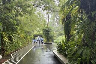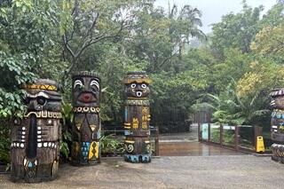 次に、パンダ館の向かいにあった「熱帯雨林エリア」に入りました。樹木に囲まれて、まるでジャングルに入ったかのようでした。色鮮やかな鳥や珍しい植物など、さまざまな動植物がいました。このエリアだけでも広大で、1日中、楽しむことができそうな大規模な動物園であることがよく分かりました。ただ、降り続く雨のため、私はこの先に行くことは断念し、最初に集まった屋根のある場所に戻りました。生徒たちは集合時間まで十分に楽しむことができたのではないかと思います。