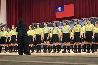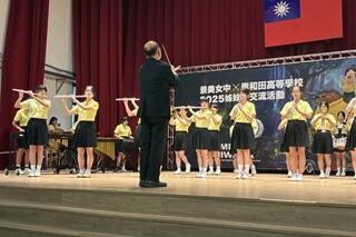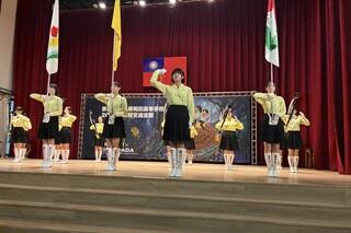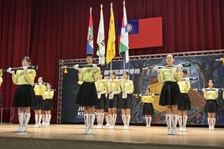 全員が入場し終わり、歓迎式典が始まりました。最初に景美女子の生徒によるウェルカムパフォーマンス(吹奏楽、旗を使ったダンス、儀仗隊演技)が行われました。特に今回、旗を使ったダンスは、劇が始まったかのような場面からスタートし、これまでのイメージと異なるものであったことが印象に残りました。