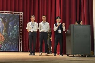 私が周校長先生と講堂に入った時にはすでに多くの生徒が入っており、我々を歓迎する大きな歓声が飛び交っていました。とても盛り上がっていました。