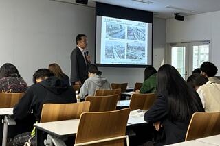 岡山教授からは最後に、「今回は大阪市の建築をとおした歴史について話しをしましたが、本日の話しをきっかけに皆さんの住んでいる地域のまちづくりにも興味を持ってもらいたい。」という話しがありました。また、「長く建築に携わっているが、常に新しい建築工法や建築素材など新たなものが出てくるため、飽きることはない。」とおっしゃっていました。建築やまちづくりにとても熱心なのはそういう要因もあるのだろうと聞いていて感じました。