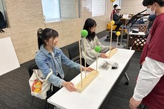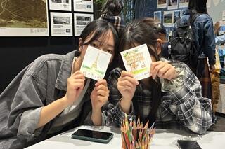 日建設計の見学を終え、30分ほど歩いて、安井建築設計事務所を訪れました。そこでも、「イケフェス大阪2025」の展示会場を見学させてもらいました。テーマはアートと建築がつながる特別展示「アート⇔建築 あ!つながってるかも」でした。数多くの建築物の写真とアート作品が横に並べられていました。また、入ったところのスペースでは、1枚の紙で建築をつくる「折り紙建築」ワークショップなども行われていました。