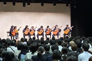 岸高ホールでの全体説明会終了後は、自由に校内見学や部活動見学などをしてもらえる時間としました。校内見学では、「解体新書」や「学問のすゝめ」などを展示している郷土資料室や、岸和田中学時代の物理実験器具などを保管している科学資料室、ニホンアシカのはく製などの生物標本、そして本校屋上にある府立高校では珍しい「天体ドーム」なども見学してもらいました。また、今回は多くの部活動が見学してもらえるよう、この見学会の時間帯にあわせて活動を行っていました。視聴覚教室では軽音楽部が部内ライブを行っていました。