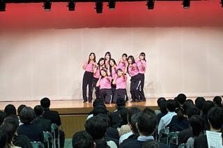 全体説明会では、本校の取組などの説明に先立ち、オープニングパフォーマンスとして、Ⅰ部ではギター部による演奏を、Ⅱ部では音体部によるダンスを披露しました。その後、オープニングパフォーマンスの代表生徒に加えて、当日の受付・駐輪場案内を担当してくれたⅠ部では女子バレーボール部、天体部の代表生徒に、Ⅱ部では書道部、生物部の代表生徒にインタビューを行いました。舞台に上がった代表生徒たちは、自己紹介と自分が所属するクラブの紹介に加えて、岸和田高校のセールスポイントや中学生へのアドバイスなどについて話しをしました。