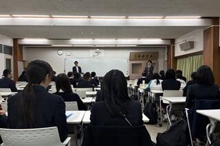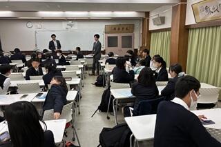 私の話しの後、担当からまずは、それぞれの研修を振り返っての話しがありました。そして4~5人がグループとなり、自分の経験したこと、印象に残っていること、頑張ったことなどについて伝えあう時間がとられました。さらに、数名の生徒が全体に対しても共有してくれました。生徒たちは当時のことを思い出しながら、楽しそうに話しをしていたのが印象に残っています。