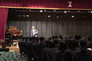 1年生は2,4,6,8組が音楽クラス、1,3組が書道クラス、5,7組が美術クラスと、芸術選択によりクラスが分けられているため、奇数クラスから伴奏者を出すのは難しいだろうと思います。実際にクラス紹介の中でそのような話しがありました。今回伴奏者を引き受けた生徒もブランクがあるとのことでしたが、立派に演奏していたことに感心しました。おそらく、本番に向け、かなりの時間をかけて練習したのだろうと思いました。