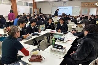 その後は各グループから複数名の生徒に残ってもらい、先生方からのインタビューに答えてもらいました。最初にも書いたとおり、教材作成に向けた素材の収集として、日本の高校生の現状を把握することが主な目的です。生徒たちはそれぞれ聞かれた質問に対して、熱心に、また誠実に回答していました。生徒たちは入れ替わりながら、およそ30分間インタビューに答えていました。残ってくれた生徒たちに感謝します。
