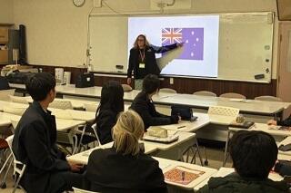 自己紹介が終わった後、「Check your knowledge on Australia」として、オーストラリアに関する3択のクイズが出されました。また、先生方からは、その答えに関して付け加えたいことなどについて話していただきました。オーストラリアの国旗や首都などは簡単でしたが、先住民、国家元首など、どんどん質問の内容が難しくなっていきました。このクイズをしている頃から、生徒たちの緊張もほぐれてきたように感じました。