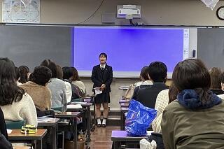 その後、本研修は姉妹校との交流に位置付けており、大阪府の姉妹校交流支援事業にかかる書類の提出について話しをさせてもらいました。そして、この後行われる参加生徒一人ひとりによる、オーストラリア研修に向けた抱負や目標など、英語による「決意表明」のことに触れ、自分の考えや思いが聞いている人たちに十分に伝わるよう、流暢な英語でなくてもよいので、思いを込めて丁寧に喋ってほしいと伝えました。発表順はランダムにあてられるという話しをした時の反応がよかったので、しっかり私の話しを聞いていてくれていたのだろうと感じました。