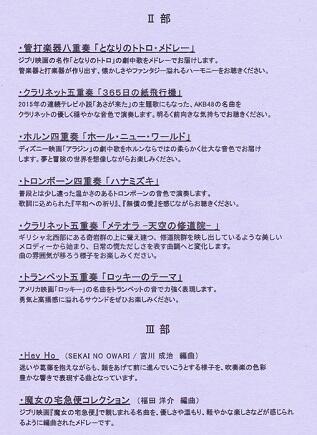 Ⅰ部・Ⅱ部の終了後にはⅢ部として、ブラスバンド部全体で、「Hey Ho」(SEKAI NOOWARI / 宮川 成治 編曲)と「魔女の宅急便コレクション」(福田 洋介 編曲)が演奏されました。アンサンブルも魅力的でしたが、ブラスバンド部としての演奏も迫力があり、とてもよかったです。
