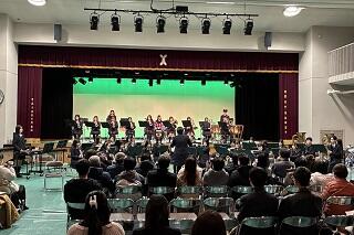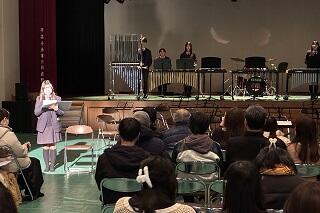 吹奏楽では多種・多数の楽器による様々な音色が組み合わさり、豊かで迫力ある音楽を体感できるのに対し、アンサンブルでは、それぞれの楽器の音色を認識し楽しむことができるのが大きな魅力だと感じました。また、私にとっては、生徒一人ひとりの演奏する姿に注視しながら曲を聴くことができるのがとても嬉しいです。さらに全体の演奏では気づいていなかった馴染みのない楽器があることも発見です。例えば、「クラリネット」と一括りで言いますが、実際には全く形状の異なるもの、まったく異なる音を発するものがあり、興味を持ちました。演奏された曲には知っているものが多くありましたが、演奏する楽器の特長によって、曲のイメージが変わるのも面白いなと感じたところです。