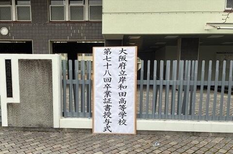 明日からはそれぞれ異なる環境の中で、この3年間頑張ってきたように、自分の持てる力を十分に発揮し、さらに成長していってくれることを願っています。式辞の最後にも伝えましたが、「この3年間、岸和田高校で学び、身に付けた能力や様々な経験を最大限に生かし、今後、自分の可能性をより一層広げ、リーダーとして社会に貢献できる人になってもらいたい。」、「自分が選択した道を『正解』とすることができるのは自分だけです。輝かしい未来に向かって、自分の選択した道を、しっかりと胸を張って歩んで行ってください。皆さんが様々な世界で活躍されること、また、生きることの楽しさや素晴らしさを実感しながら、悔いのない充実した人生を送ってください。」と願っています。