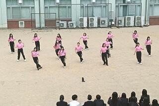 「新入生歓迎コンサート」では、ピンクのTシャツを着た部員たちが全員一緒に、また4~6名程度のグループに分かれて、数多くの曲を次々に踊りました。先日の「お城まつり」での狭いステージでは6名でよかったですが、広々とした中庭では、数多くの部員が踊ってくれてよかったなと感じました。中庭に降りていた生徒たちはとても盛り上がっていました。私も下から撮影したらよかったなと後悔したところです。引退した3年生を含め、音体部の皆さん、お疲れ様でした。ありがとうございました。