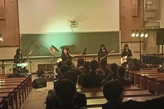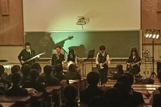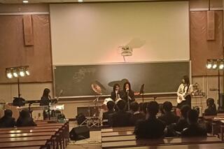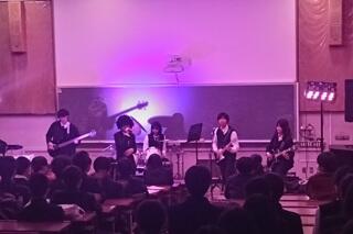 私は昨日、途中抜けなければならない時間帯があり、5曲すべてを聴くことはできませんでしたが、何とか3つのバンドの演奏を聴くことができました。「新歓ライブ」として実施されたライブに、1年生が何人来ていたのかは不明でしたが、視聴覚教室には多くの生徒たちが集まっていました。会場はとても盛り上がっていました。