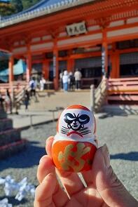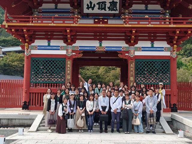 ぐねぐねとした山道を登り、対向車のバスやトラックとスレスレすれ違う度、運転手さんのドライビングテクニックに歓声があがる中、最後に訪れたのは、勝尾寺。ずらり並んだ"だるま"達に迎えられ、金木犀香る中、合格祈願をしたり、だるまみくじやお守りを買ったり、思い思いに散策しました。