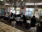 | 体育館での集合状況 | 美術教室で陶芸の基礎(粘土の成型) |