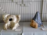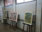 1階の中廊下には、美術部の作品(卒業生の大型作品も含む)が展示されています。 工芸作品(陶器)や大型のキャンパスに描かれた風景、人物等、迫力・躍動感を感じる大作で飾られています。本校を志望する中学生だけでなく、本校生徒にも芸術的な刺激を感じながら、感性を磨く良き機会となっています。