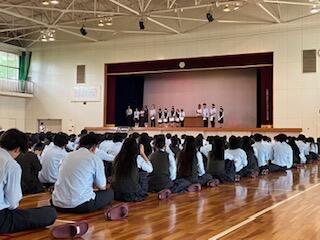 吹奏楽部、美術部、バドミントン部、バドミントン部のみなさんが表彰されました。