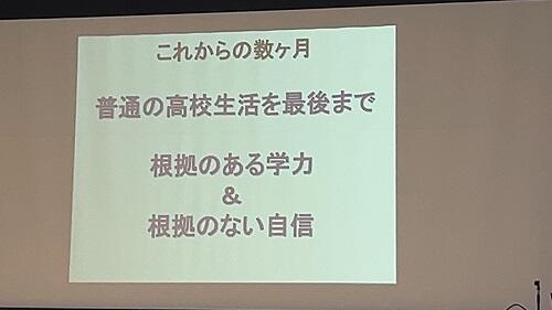 進路説明会が終わってから、担任の先生方から激励の言葉が述べられました。今日のこの集会が終われば、学年で集まる機会は卒業式までないのだとか。そういう貴重な機会に、これから困難な時期を迎える138期生に向けて、先生方から心のこもった勇気付けられる温かい言葉をいただきました。笑いあり涙あり詩の朗読あり...。私も途中でもらい泣きしそうになりました。