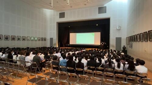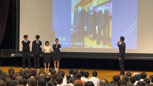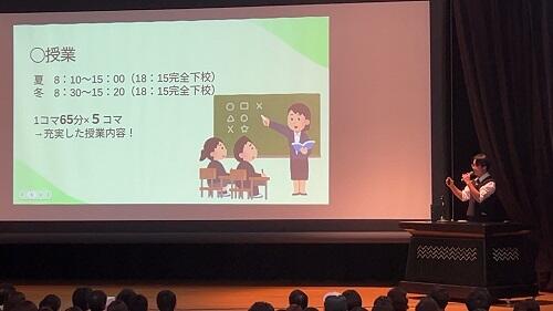 全体会では私から挨拶させていただいた後、自治会長の一日の高校生活が詰まった動画による説明、自治会役員による行事や施設・設備に関する説明、首席の先生による本校教育その他に関する説明を行いました。