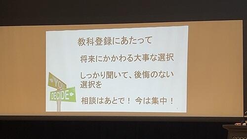 3限目のホームルーム、1年生は多目的ホールで、2年生は体育館でそれぞれ教科登録の説明会を行いました。言うまでもありませんが、進路希望の実現に向けて非常に大切な選択作業になります。先生や保護者の方とよく相談しながら自分にとってベストな道を選んでくださいね。