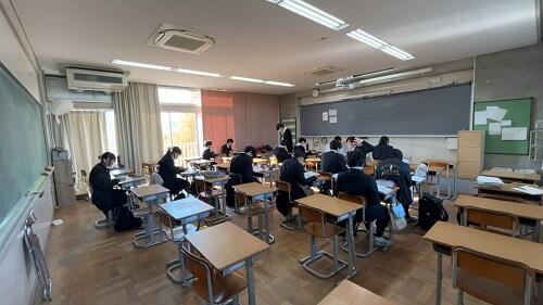 ということで、9時頃にホームルーム教室の様子を見にいくと、1・3年生は考査の真っ最中でみんな一生懸命に問題に取り組んでいました。