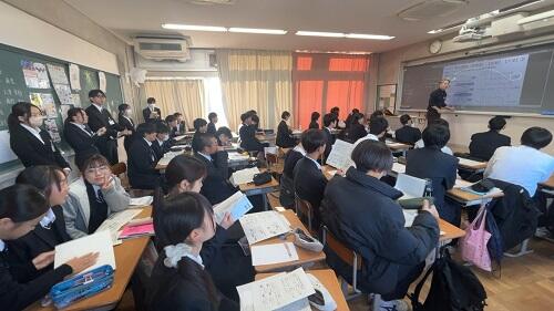 9時30分から応接室で挨拶や今日の流れの説明を行い、2限目に授業をいくつか見学していただきました。私も授業見学だけ同行しましたが、当たり前ですが生徒たちはいつもと同じく対話しながら積極的に学習に取り組んでいました。授業見学後、3限目に本校の先生方とお話していただいて終了となりました。参加してくださった大学生の皆さん、本日は本校にお越しいただきありがとうございました。来年はぜひ大阪府の教員採用試験を受験して下さい。そしていつか、本校教員として北野生のために尽力してくださるような未来が来ることを願っております。