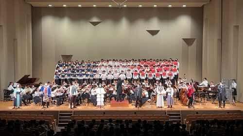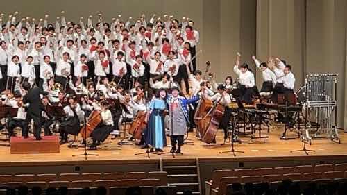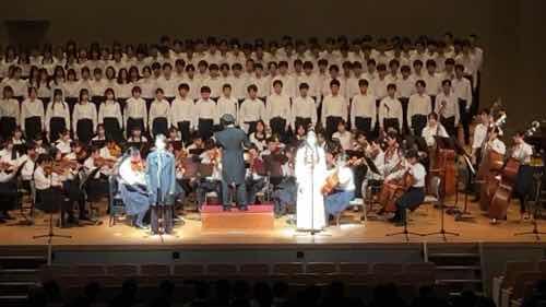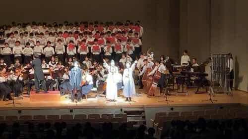 再び休憩を挟んで2年生の学年合唱で、ミュージカル「レ・ミゼラブル」の曲の合唱や演奏がありました。この「レ・ミゼラブル」、昨年も鑑賞してそのレベルの高さに大変驚かされましたが、今年の演奏も昨年に負けず劣らず素晴らしい出来上がりでした。特にソロで歌った生徒たち、とても高校生の授業の発表会とは思えないほどの歌唱力でした。