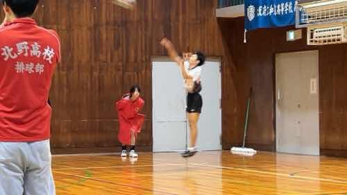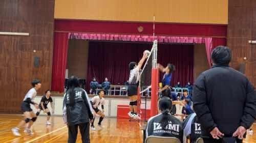 初戦の相手は北かわち皐が丘高校でしたが、序盤はサーブなどのミスが続いてリズムに乗れず6-13と大きくリードされます。中盤は徐々に落ち着きを取り戻し2点まで詰め寄りますがなかなか追いつけず再び5点差をつけられる場面もありました。しかしそこから再び追い上げ21-21で同点に追いつくと、さらに連続で得点を挙げて25-21で第1セットを奪います。