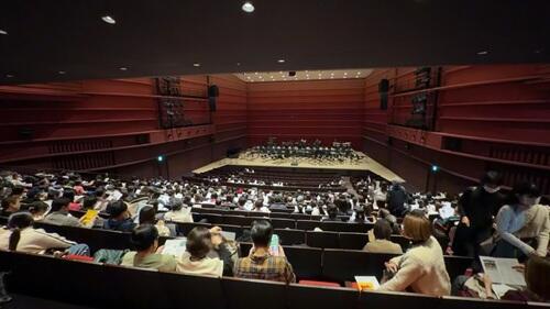 今日は午後4時から茨木のゴウダホールで行われた本校と市岡、茨木、春日丘、千里、豊中の府立高校6校による合同演奏会を聴きに行きました。