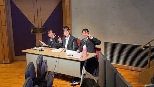 休憩の後、後半の司会は本校放送部2年生のHさんと1年生のKさん、Oさんが務めてくれました。それにしてもさすが北野の放送部ですね。とてもいい声で上手に話せていましたし、間合いの取り方が上手で進行もスムーズでたいへんよかったです。