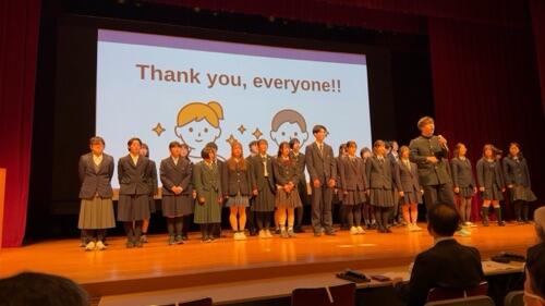 表彰もすべて終わって、最後に司会を務めてくれたHさんが感想を述べてくれました。これがまたその内容も声色も素晴らしく、参加した全員が癒されましたし、また先に向けて頑張ろうと思う勇気をもらうことができました。私の周りにいらっしゃった他校の校長先生方や府教育庁の上席の皆様から、たくさんのお褒めのお言葉をいただきました。