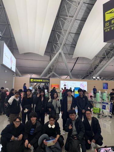 写真は、関西空港に集合した時のものです。 阿武野高校の4名の生徒さん、先生と一緒です。