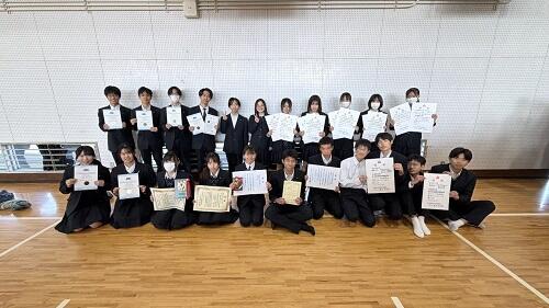 私からの話に引き続き、生徒表彰を行いました。本日顕彰されたのは以下の生徒たちです。