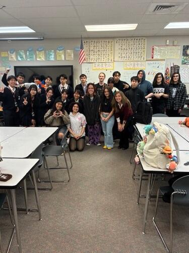 また、ある生徒は「福笑い」を紹介。言葉の壁を超えた大きな笑いが教室中に響き渡り、まさに「文化交流」の醍醐味を感じる瞬間でした。他には、まるで日本語の先生のように丁寧に自己紹介を教えている頼もしい姿も見られました。私のホストファミリーも様子を見に来てくれましたが、「本当に素晴らしい発表だった」と大絶賛していましたよ。