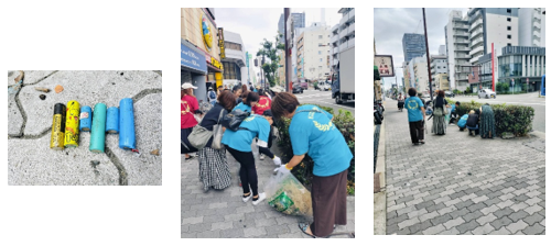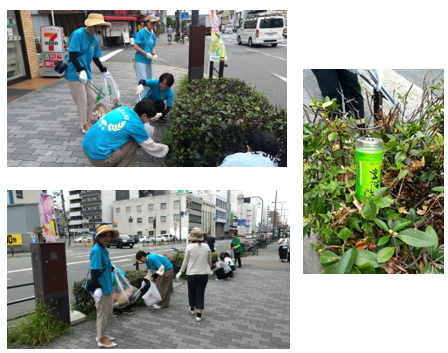 店で購入し、不要になったものが捨てられているのか、特に店舗付近の植え込みにゴミが多いのが印象的でした。初めての道での清掃活動をゴミの種類も街や道によってこんなにも違うものなのね、と話しながら皆さん熱心に集めていらっしゃる姿が印象的でした。