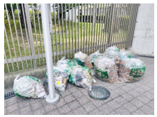 ▶南側:通学路である新北野通りは、たばこの吸殻が非常に目立ちました。また植え込みの中にも吸殻、お菓子のゴミ、ペットボトルが多く捨てられており、皆さん屈んで火鋏で届くところまで拾ってくださいました。スタート時点では涼しいかと感じたのですが、掃除をしていると汗が吹き出してきました。通学路のゴミが減り、気持ちよく登下校してもらえたら嬉しいです。