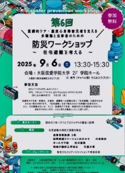 大阪信愛学院大学 しんあい教育研究ケアセンターが中心になって進めている「医療的ケア児者・家族のための防災プロジェクト」に、数年前から本校も関わっています。このプロジェクト主催の「第6回防災ワークショップ」が9月6日(土)に開催され、本校PTA会長、教員、校長が参加しました。