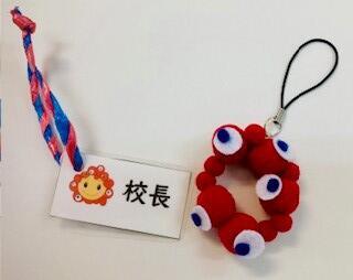写真は3年生が作ったミャクミャクのストラップと「こうやんミャクミャク」の荷物札です。