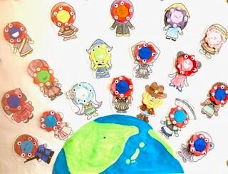 写真は病弱部門 小学部の児童が制作した、国際色豊かなミャクミャクです。