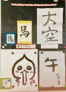 先日、大阪市立総合医療センター分教室を訪問したところ、中学部の教室前廊下の掲示板に、国語で取り組んだ書写の作品が展示されていました。書くにあたっては、行書体について学習したとのことで、柔らかく流れるようなタッチが印象的でした。そして、字だけでなく、見る人を思わず笑顔にするようなおちゃめなイラストの作品もあり、心があたたかくなりました。
