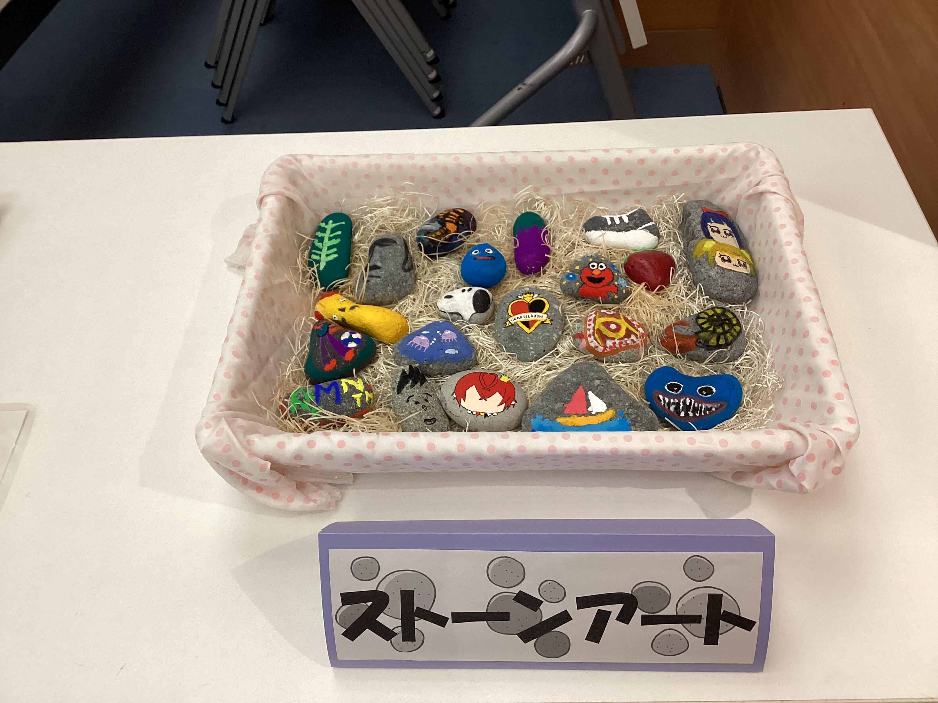 中学部は「ウズベキスタンとの交流」と「ストーンアート」の取り組みを発表しました。ウズベキスタンとの交流は、JICAの青年海外協力隊員の方を介して実施したウズベキスタンの病院との交流の様子を、動画やスライドにまとめました。ストーンアートは、石を見て得たひらめきを基に、石の形を活かしたオリジナルの作品を仕上げました。