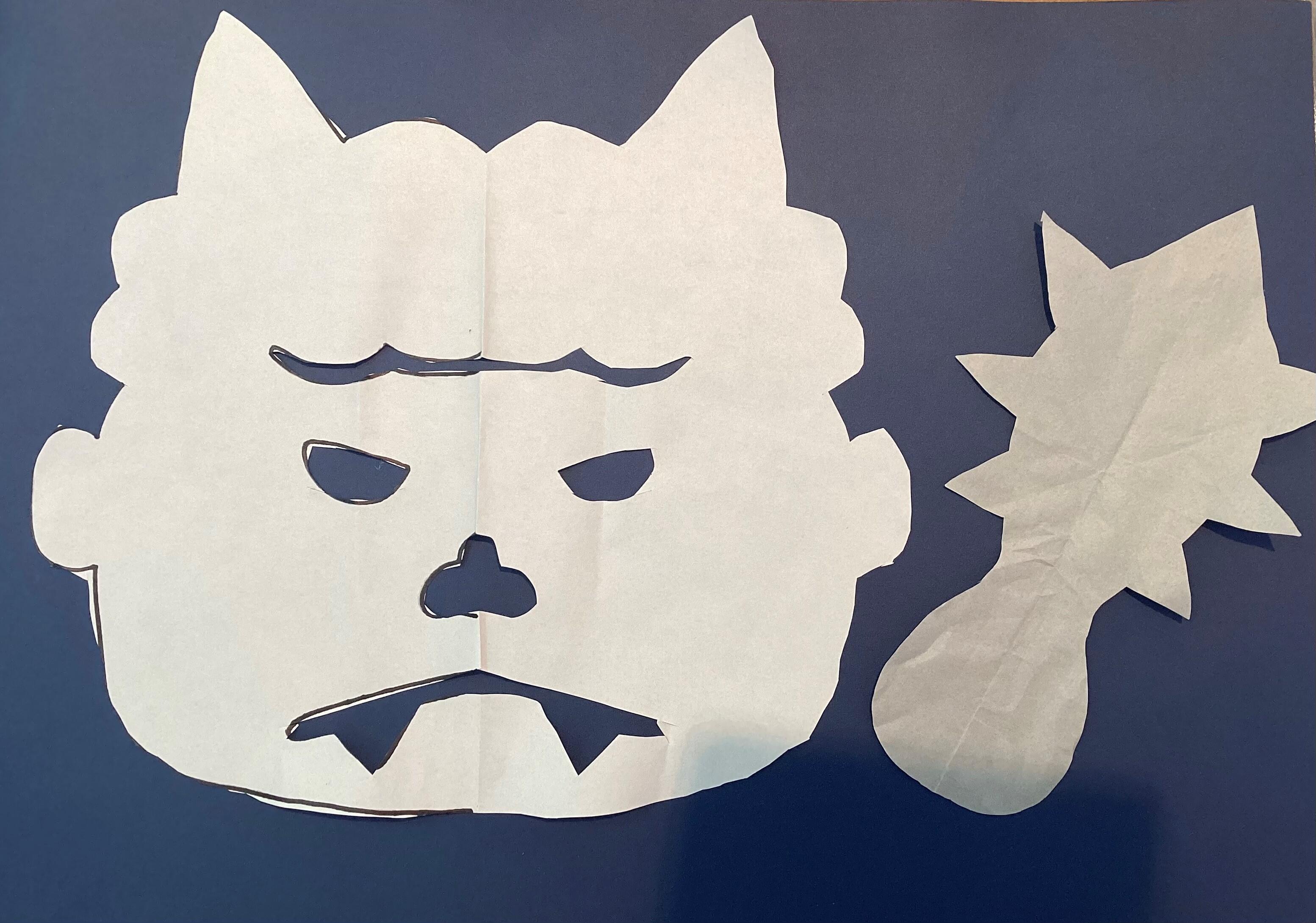 2月1日(日)、授業参観を分教室やベッドサイドでそれぞれ行いました。まずは、節分クイズに取り組みました。三つの選択肢の中から番号を選び、番号札で答えました。正解すると、とても嬉しそうでした。次に、切り絵で鬼と金棒を作りました。はさみを使って、線の上を丁寧に切ることができました。最後に、楽しかったことや頑張ったことを発表しました。