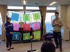 2月12日(木)は、小学部での活動で、レッドハリケーンズの3名をお招きしました。ラグビーのルールを説明していただいた後、チームを作り、時間内に何回パスを回せるか挑戦しました。どのようにしたらたくさん回せるかを話し合い、2度目はどのチームも回数を増やすことができました。その後は、ストラックアウトをしました。普段遊んでいるボールの形とは違うため、扱いに慣れていない児童も多くいましたが、宣言通りの的にボールが入ると拍手と歓声が起こり、みんなで喜びを共有することができました。