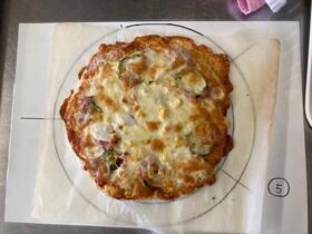 家庭基礎の授業見学をさせていただきました。調理実習でピザを作っていました。
