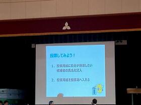 2年生は主権者教育の授業をうけました。立候補者演説、模擬投票、開票作業など