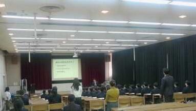 本日、3年生を対象に、就職を希望する生徒の集会を行いました。本校では、毎年およそ60名の生徒が就職を希望しています。